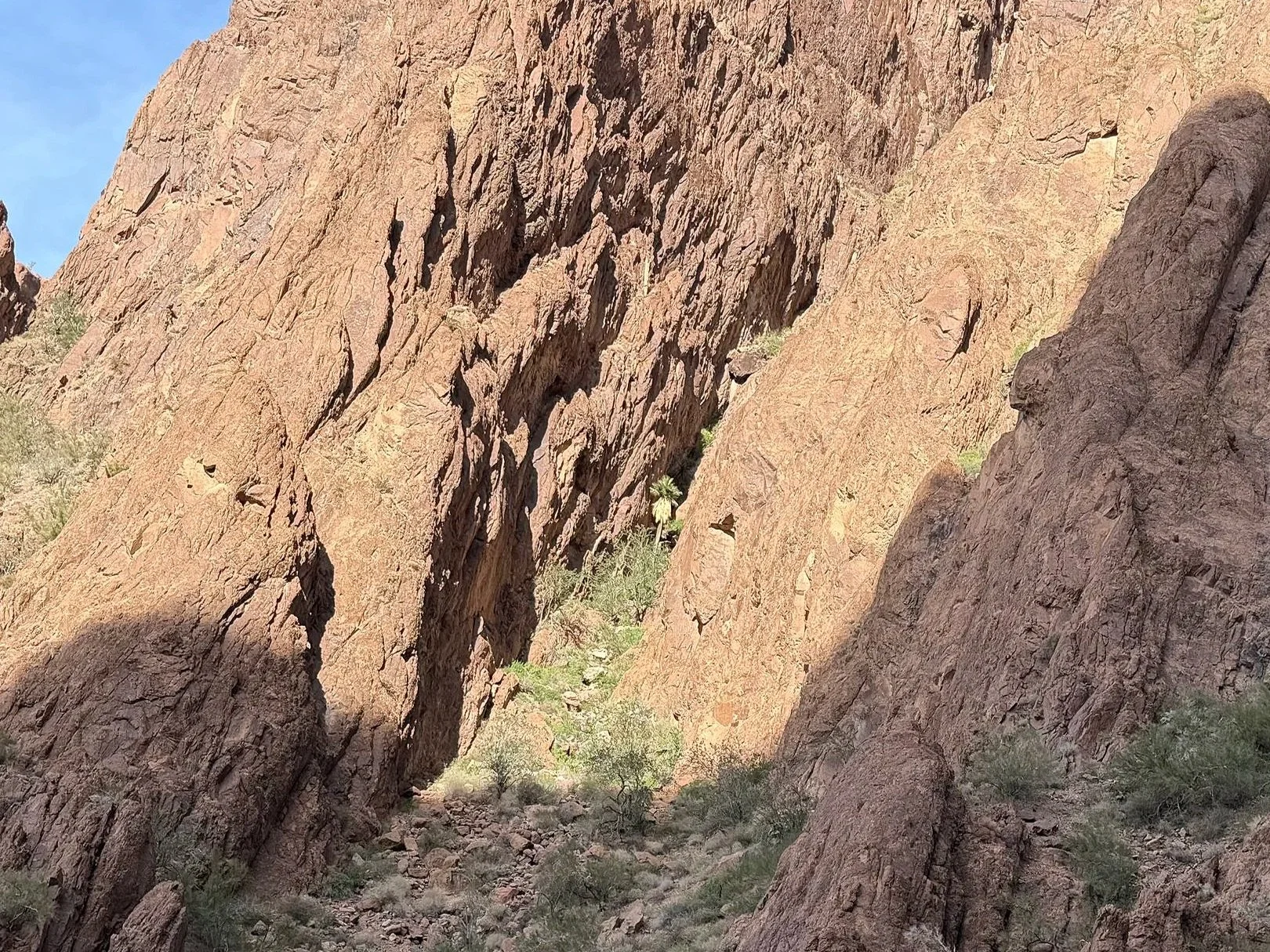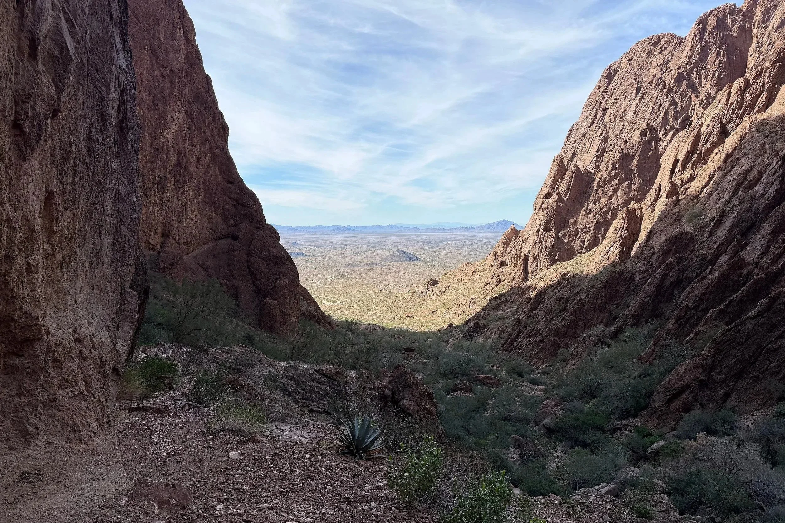 View from inside Palm Canyon Trail looking out to the west.