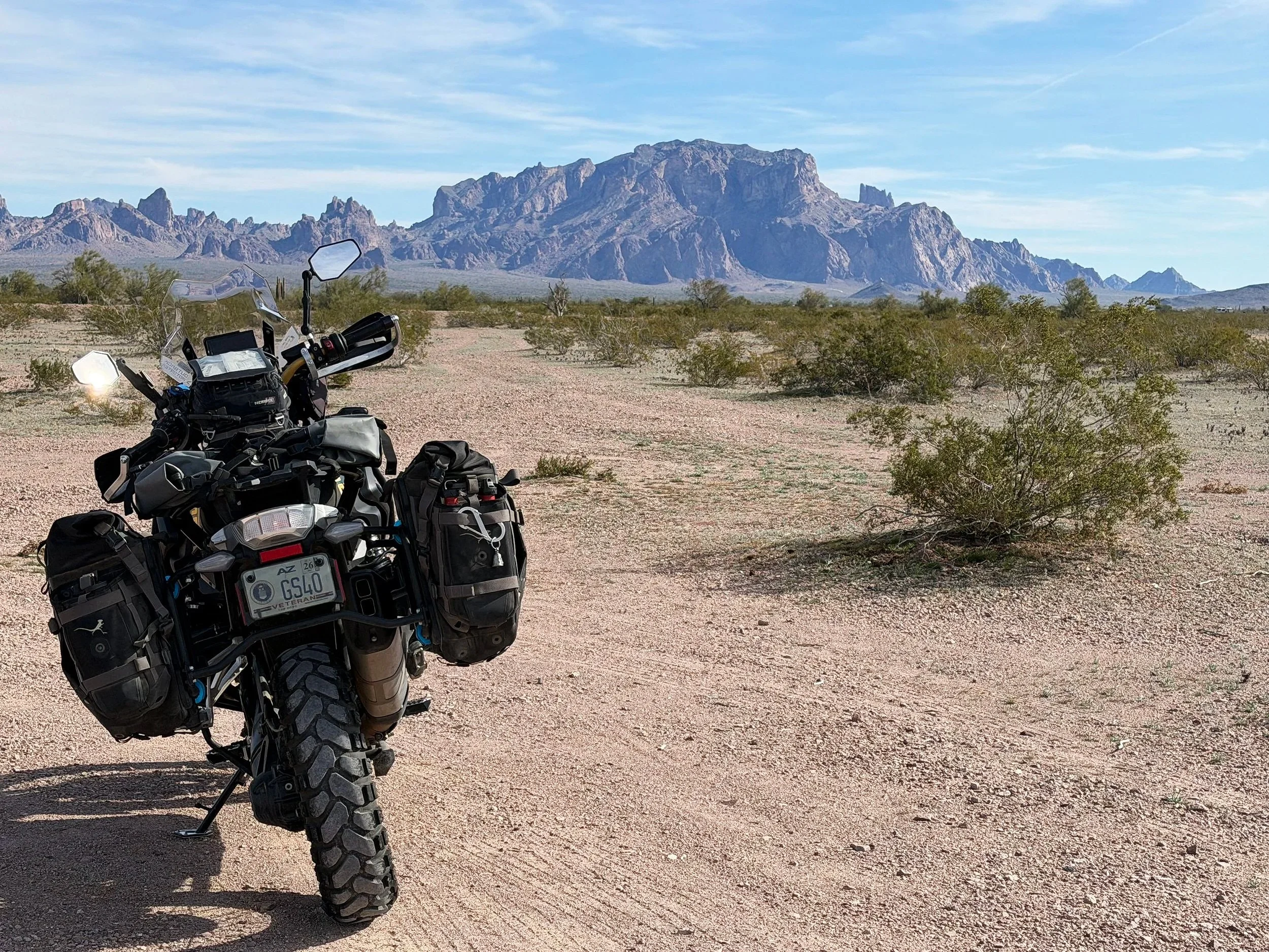 Kofa National Wildlife Refuge presents a rustic, Patagonian-like riding environment, offering an unforgettable connection to its untamed wilderness. This 3-part immersive route, encompassing Palm Canyon Road, Kofa Queen Canyon Road, and Palm Canyon Trail, stretches 69 miles from Quartzite. Anticipate a 4-5 hour journey to complete the entire route. From expansive mountain ranges to unique California Fan Palms, volcanic rock formations, and the possibility of spotting a herd of Desert Bighorn Sheep, this excursion is truly special and well worth exploring from its rugged trails. Whether you make it a trip in and of itself, camp overnight in its wilderness, or combine it with local routes in the area, such as the Arizona Peace Trail, Alamo Road, or Salome Highway, you will not be disappointed with all this lost highway has to offer. Ride safe and enjoy the adventure.